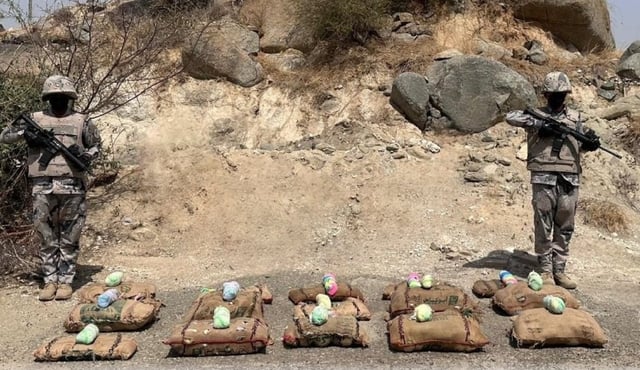 وفي سياق متصل، أحبطت الدوريات البرية لحرس الحدود في قطاع الدائر بمنطقة جازان تهريب (90) كيلوجرامًا من نبات القات المخدر.